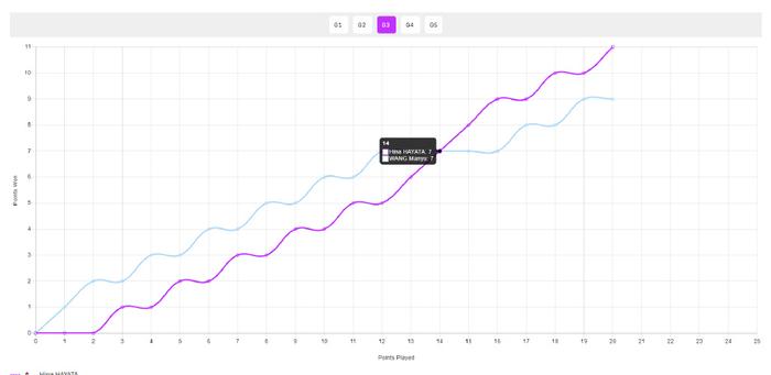 这场比赛第三局早田希娜其实也打得不错,王曼昱7-5领先,早田追到7-7后王曼昱似乎有点慌乱,早田打到9-7领先,最终早田11-9拿到,早田手握2-1的巨大领先优势。